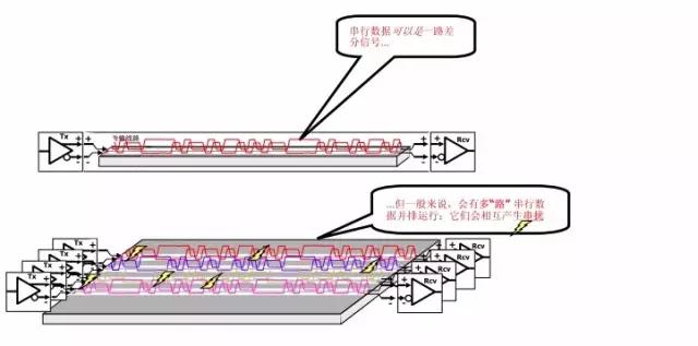 串扰是指当信号在传输线上传播时,因电磁耦合对相邻的传输线产生的不期望