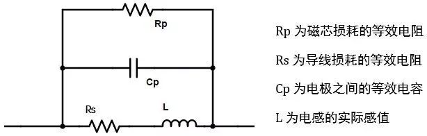 电感的等效模型如下图:一个电感串联一电阻再与电容并联,正是感值、直流电阻和寄生电容的体现。