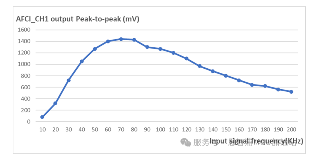 关于采集电路设计,在理论研究中,通过分析频域特性,我们通常发现直流故障电弧发生时,直流电流在10KHz-100kHz频段范围内的谐波能量会明显增大。所以所设计的电路使用带通滤波处理输入信号。其频带特性如下图所示: