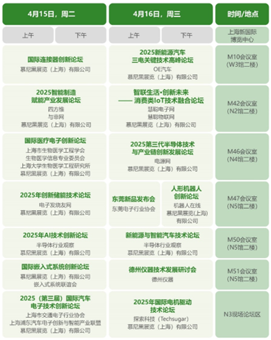 2025慕尼黑上海电子展(electronica China)将于4月15-17日在上海新国际博览中心举办。展会同期将举行精彩纷呈的“创新论坛”,紧紧把握电动车、汽车电子、人形机器人、三代半、嵌入式系统、人工智能、物联网、储能、智能制造、医疗电子、连接器、电机驱动、无人机等热门应用市场与高速发展行业,邀请来自电子行业、应用领域以及科研院所的业界领袖、技术专家、科研学者为与会观众答疑解惑,分享生产案例,提供先进技术解决方案,展望行业未来发展趋势。