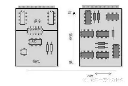 数字信号因开关频率高,噪声频谱宽,对模拟信号容易造成干扰。