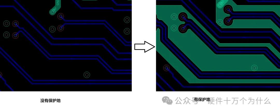包地(Guard Trace)能有效减少高速信号的电磁辐射,同时抑制外界电磁干扰的耦合。