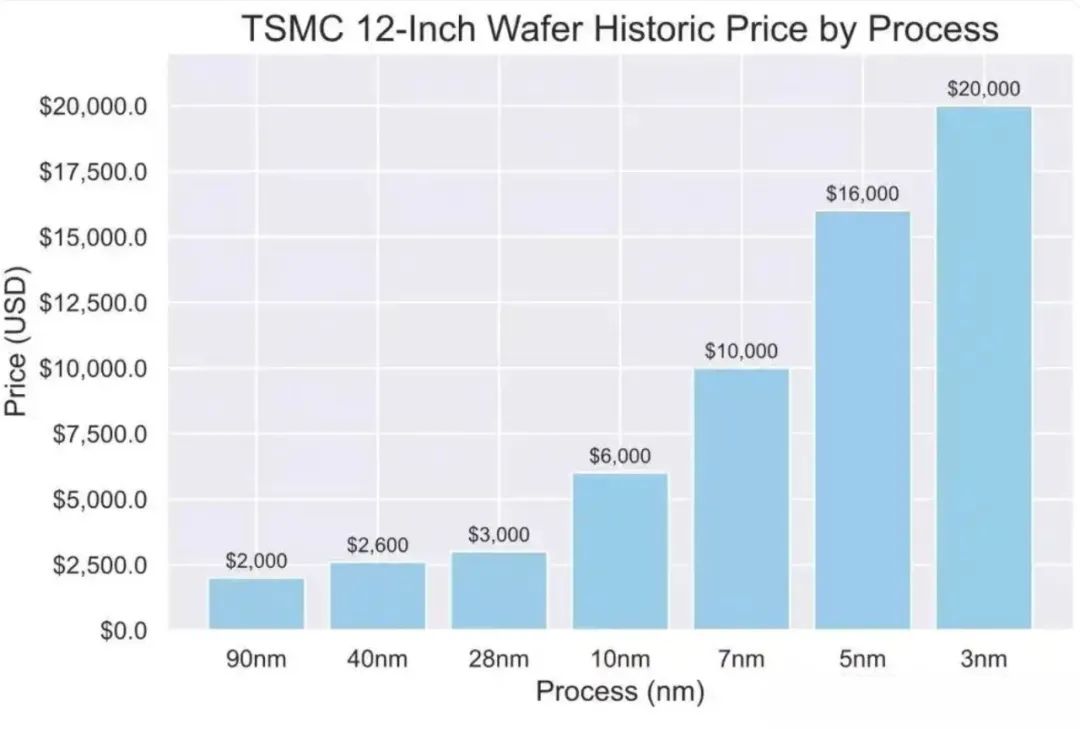 由于没有其他代工厂能够与台积电的步伐相匹敌,因此大多数决心推出尖端芯片的厂商只能寻求其服务。制程技术演进至10nm后,晶圆报价增幅显著,达到6000美元;进入7nm、5nm制程世代后,价格破万。据称,N2晶圆每片的价格可能可能高达3万美元,与3nm晶圆的价格1.85-2万美元/片之间相比,这是一个巨大的上涨。