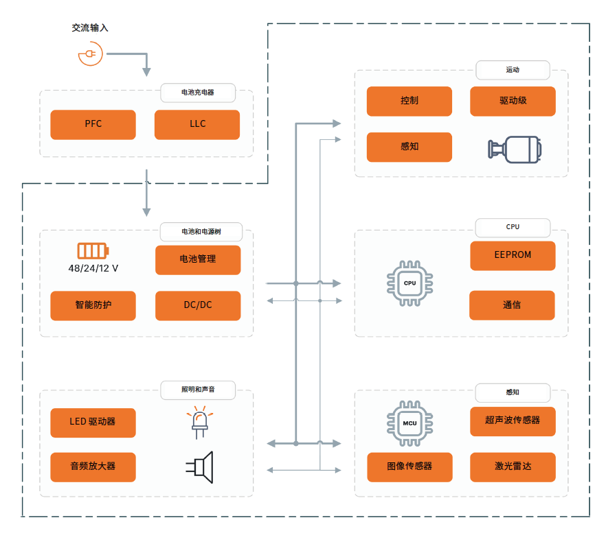 自主移动机器人(AMR)是一种复杂的系统,与自动驾驶汽车有许多共同之处-- 它们需要感知、电机驱动、电源转换、照明和电池管理。也许最大的挑战是将这些子系统整合到一个最终产品中-- 由于需要集成来自不同供应商的不同子系统,这一挑战变得更加困难。
