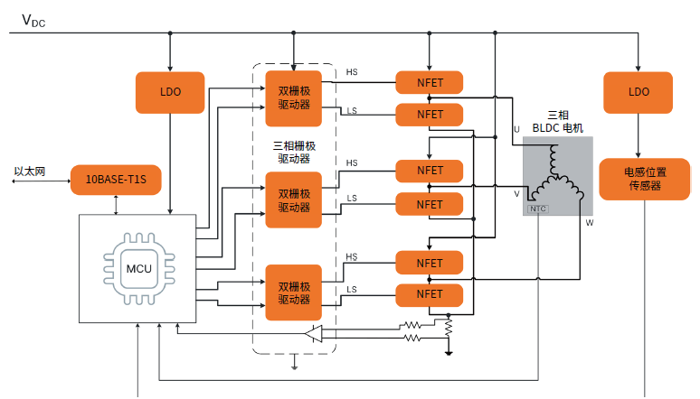 图2 驱动BLDC电机需要多个元器件协同工作(来源:安森美)